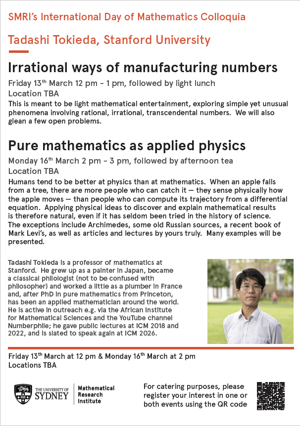 ‘Pure mathematics as applied physics’ – A special International Day of Mathematics Colloquium (2/2) by Tadashi Tokieda